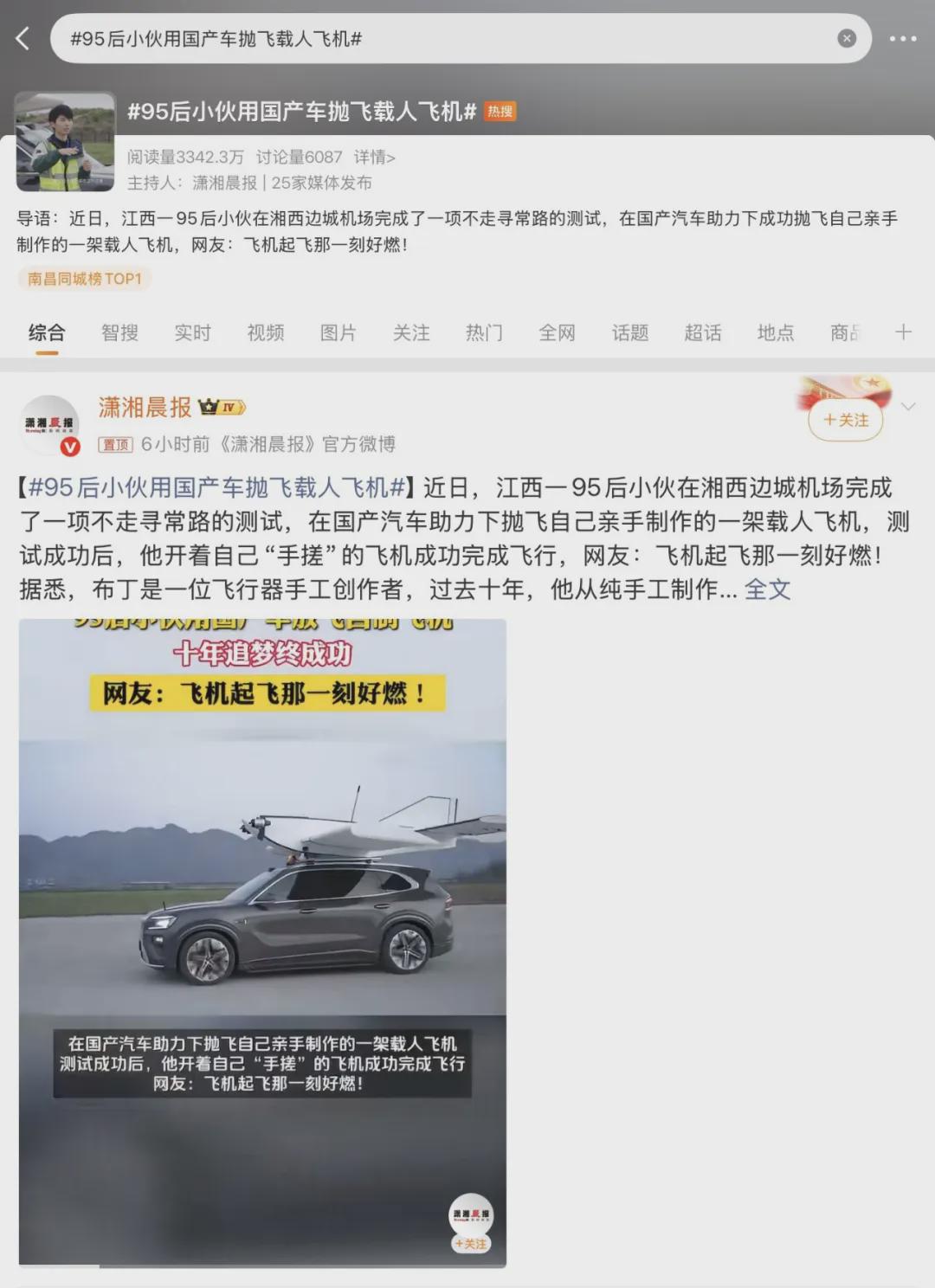 一位95后民间飞行爱好者,手搓喷气式载人飞机,在极氪8X的助力下,完成车载高速风洞测试与长距离跑道加速,成功实现全球首次汽车助力抛飞起飞挑战,一举打破尘封25年的世界纪录。